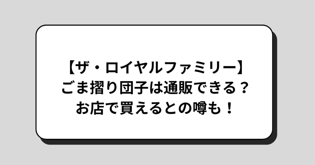 2025年11月2日に放送された「ザ・ロイヤルファミリー」に出てきたごま摺り団子が世間で話題になっていますね! もちもちのお餅の中からとろっとした、ごま蜜が出てくるごま摺り団子を'一度は食べてみたい!'という方が多いんではないでしょうか? そこで本... -