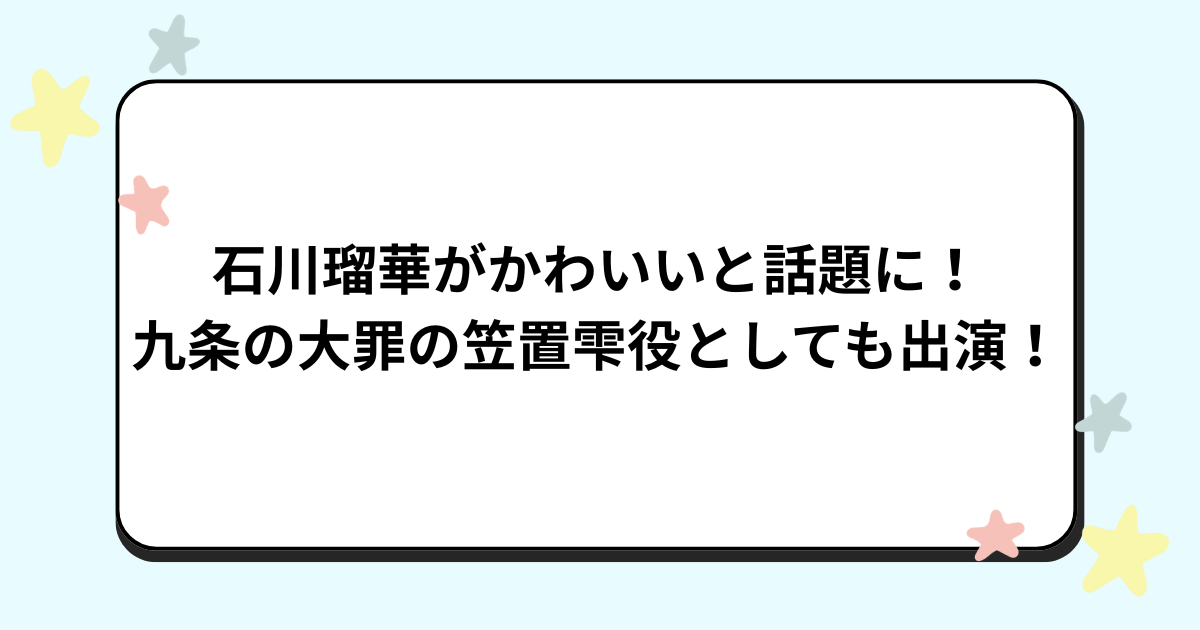 話題作「九条の大罪」に出演している石川瑠華さんの注目度が徐々に上がってきている中、彼女の可愛さが話題になっています!